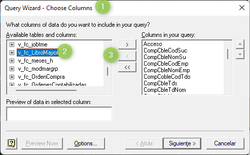 - En la pantalla siguiente va a mostrar el contenido de la base de datos de tablas y vistas