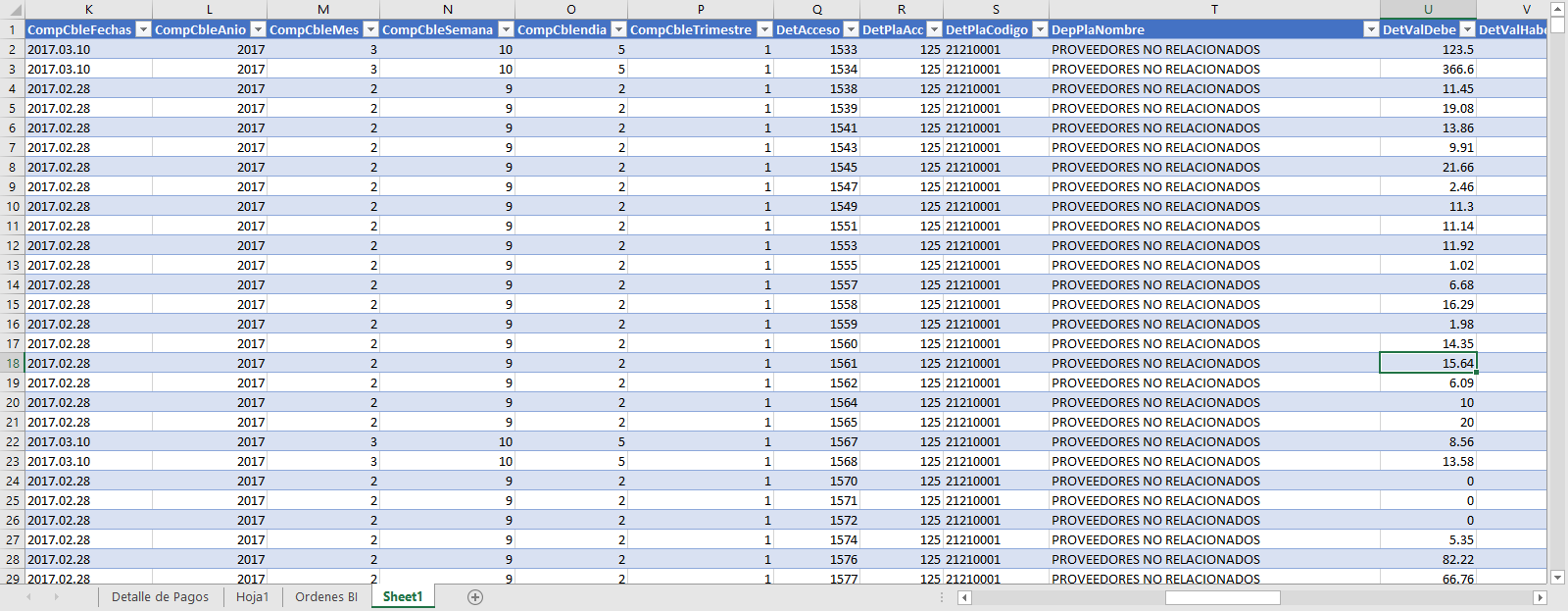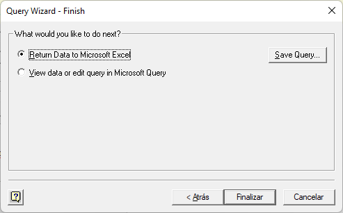 Luego dos opciones una para Retornar y mirar el listado de datos en una hoja de excel