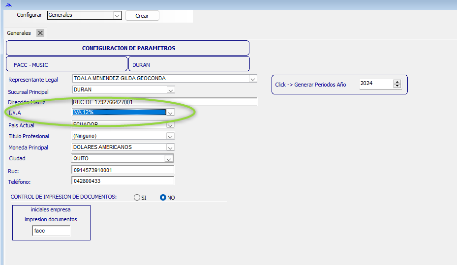 Aqui en esta pantalla esta un parámetro que dice IVA