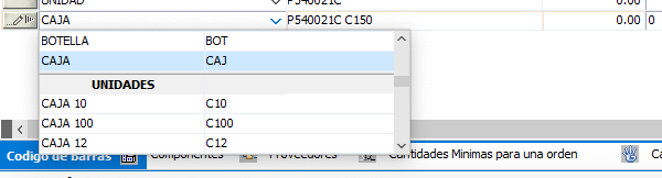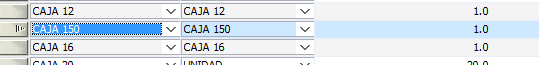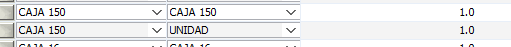 Y CREAMOS L AUNDIAD DE MEDIDA caja e 150 y copiamos igual a los demás en las siguientes columnas