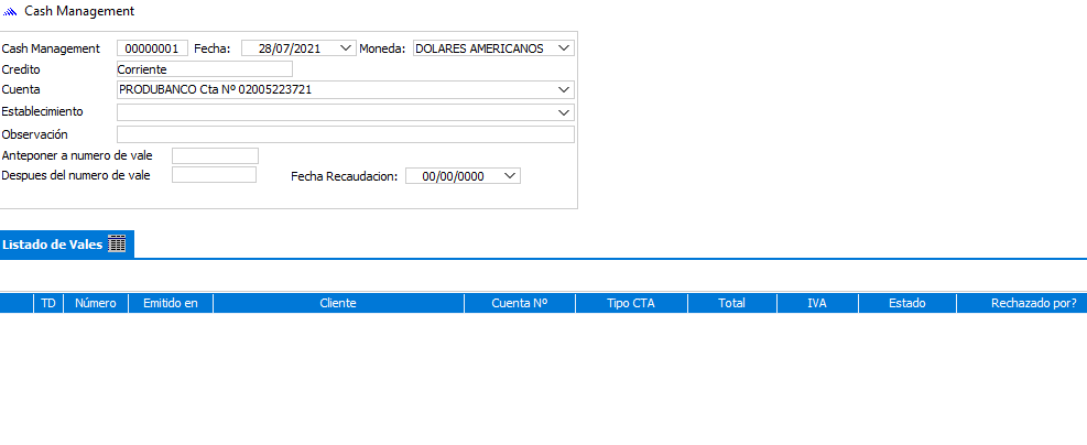 Cash Management Recaudación Documento
