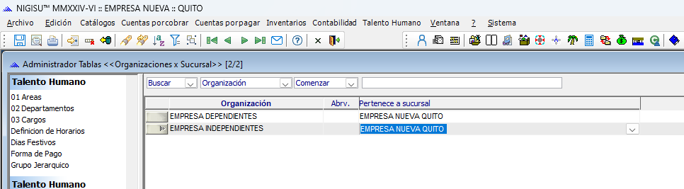 Primero Creamos dos organizaciones, esto nos permite agrupar a los empleados