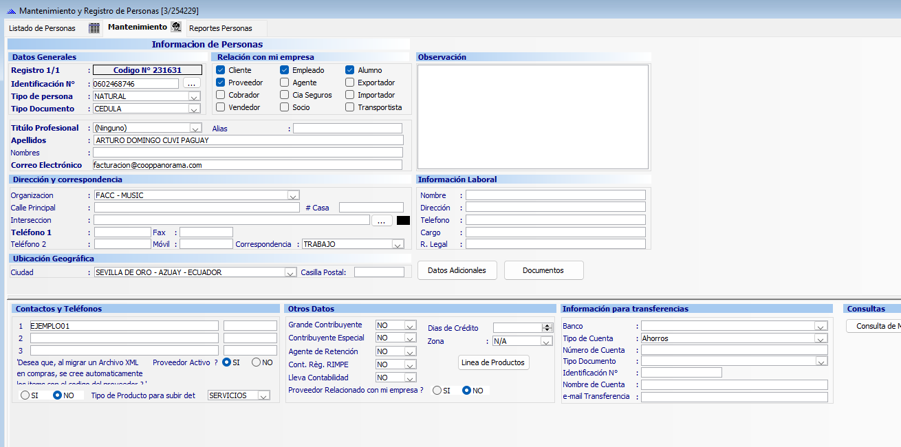 Si el empleado va ser un cajero, vendedor, debera ser marcado esos casilleros para ser utilizados en ventas y en cobranzas