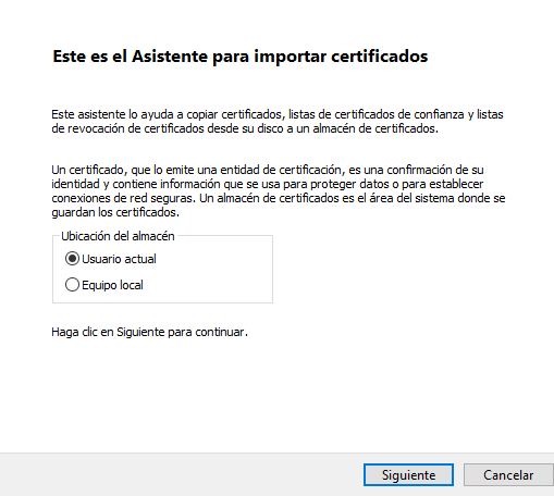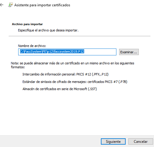 Al dar siguiente le mostrara la via y archivo de firma electronica