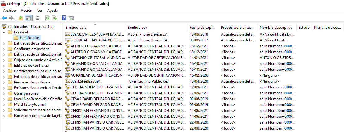 y miramos en la siguiente pantalla los diferentes certificados y la fecha de expiracion