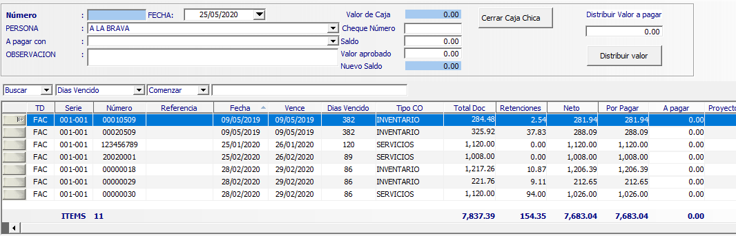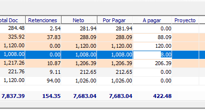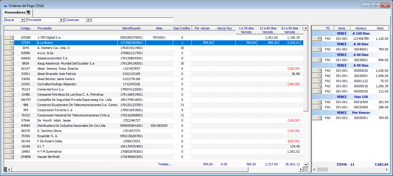 Al elegir un proveedor en la parte derecha nos muestra un detalle de los documentos que estamos adeudando