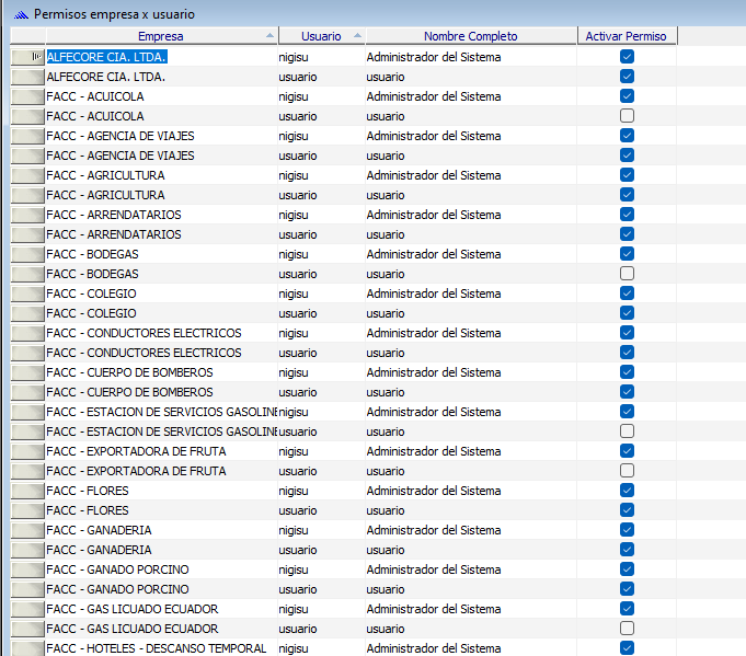 Nos vamos por Sistema / Permisos Empresas por Usuario