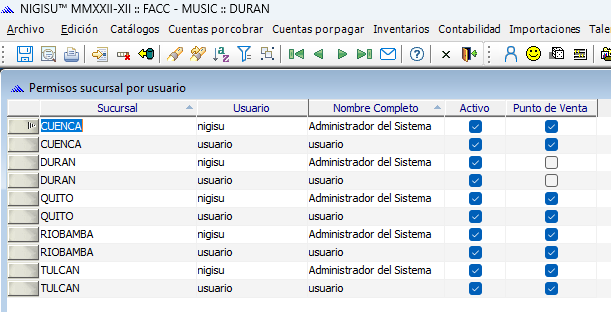 Nos vamos por Sistema / Permisos Sucursales por Usuario