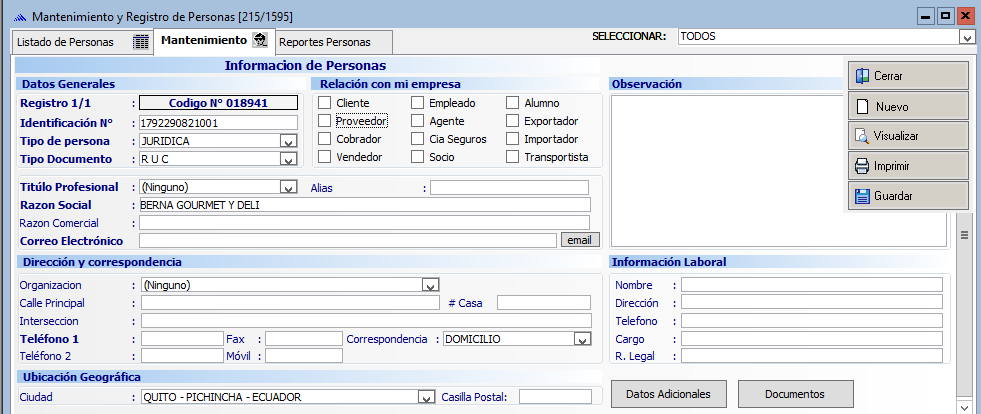 Aqui es donde se gestiona la información de personas que se relacionan con la empresa, estos pueden ser Clientes, Proveedores, Empleados, Vendedores, Cobradores, Aseguradoras, Alumnos.