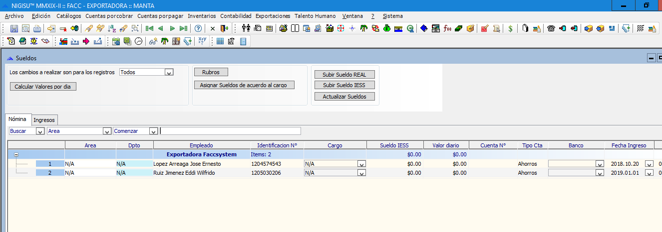 Para poner sueldos a empleados ir a